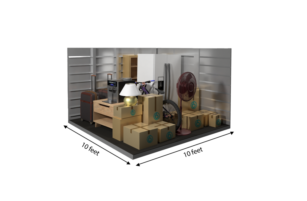This 100 sq ft storage unit offers about the space of a large walk-in closet, perfect for storing the contents of a studio apartment—such as a mattress set, small furniture, appliances, and boxes. It’s a great choice for seasonal storage, moving, or keeping household items organized and secure.
