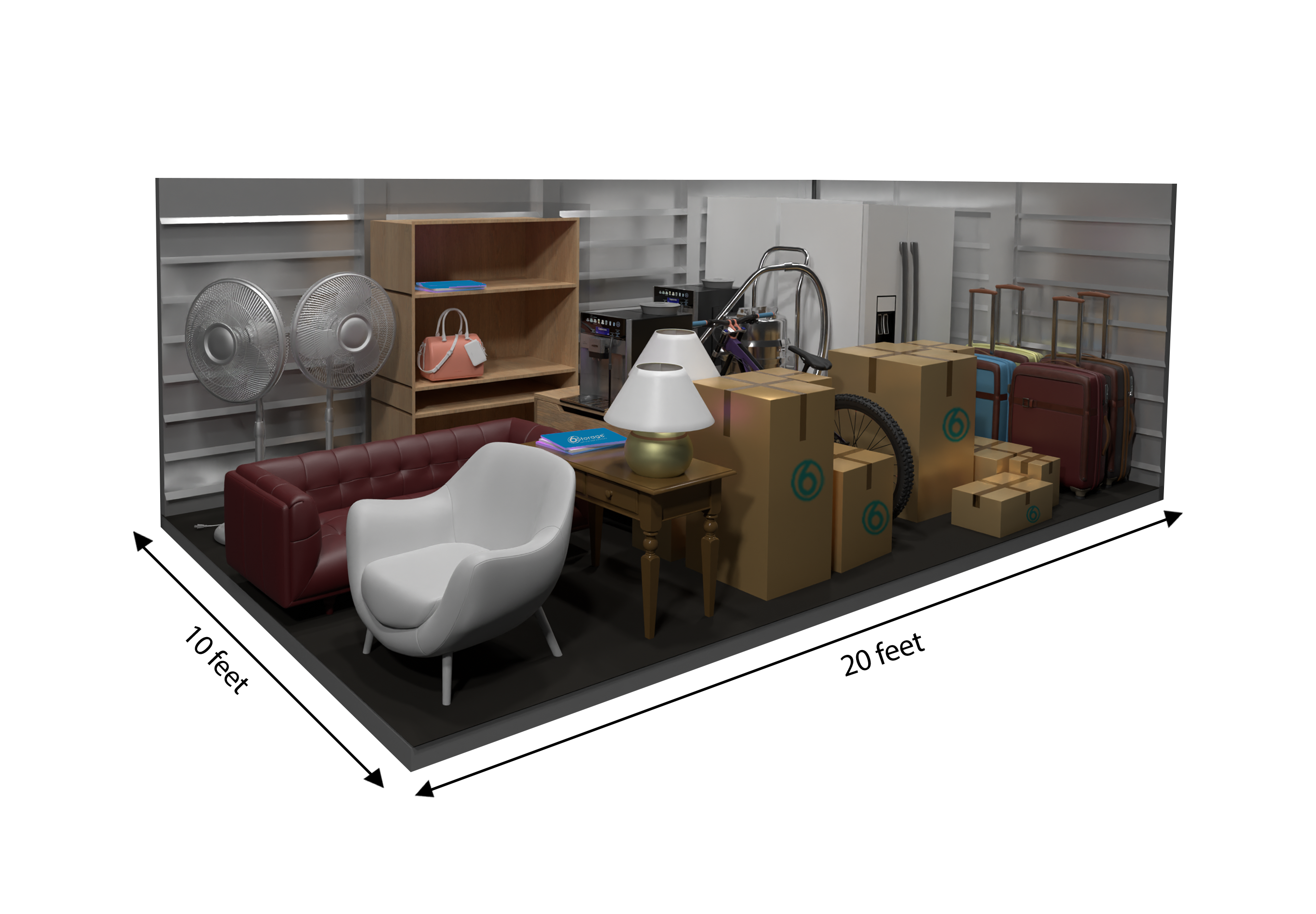 This 200 sq ft storage unit is about the size of a standard one-car garage, providing ample space for the contents of a multi-bedroom home. It can accommodate large furniture, appliances, boxes, and even vehicles—ideal for long-term storage, major moves, or business inventory.